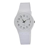 Swatch-Uhr JUST WHITE GW151 mit einem Kunststoffgehäuse, wasserdicht geprüft bis 3 bar. Ein Kunststoff-Armband, Dornschliesse, Quarzuhrwerk und ein weißes Zifferblatt runden das Design dieser Swatch-Uhr ab.